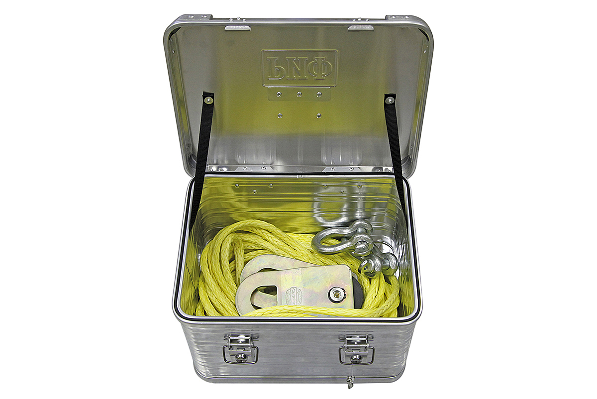 Прочность ящика обеспечивается за счёт двух мощных ребер жёсткости расположенных по периметру ящика в верхней и нижней части и штампованных ребер боковых стенок. Крышка фиксируется к ящику на крупных усиленных стальных петлях, а её открытие ограничивается капроновыми ремнями. Два замка с защелками обеспечивают надёжное закрытие и достаточную плотность прилегания крышки к уплотнительной резинке, обеспечивающей надёжную пылевлагозащиту. Замки оснащены личинками под ключ и отверстиями для опломбировки. Верхняя крышка ящика оснащена литыми уголками с упорами для усиления прочности в целом, а также для надёжной фиксации ящиков друг на друге при вертикальном штабелировании. Прочные и удобные ручки рассчитаны на перенос значительного веса.