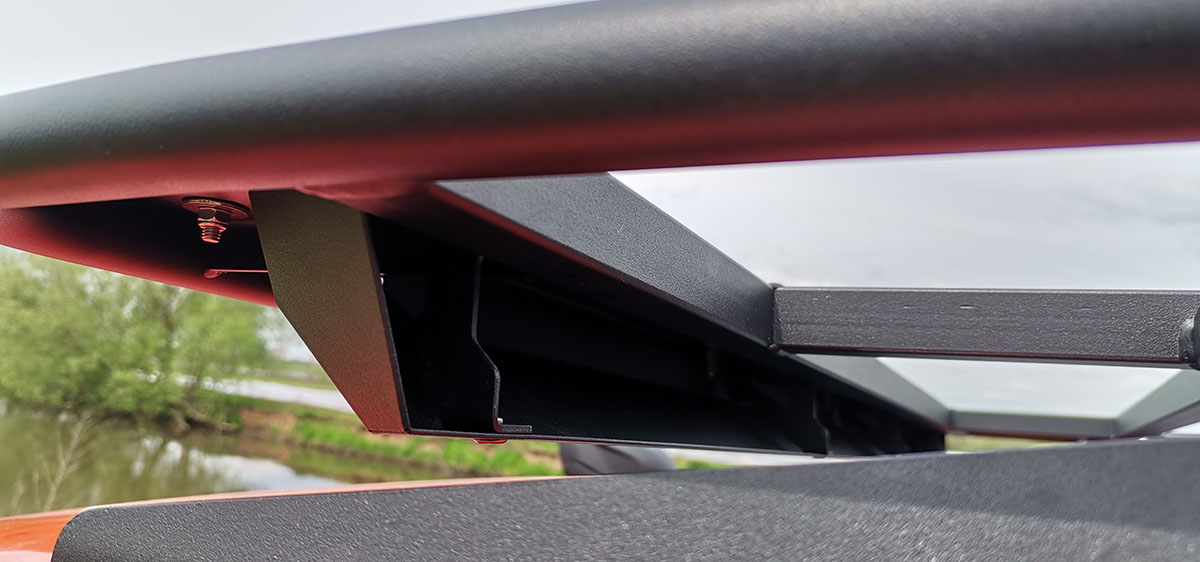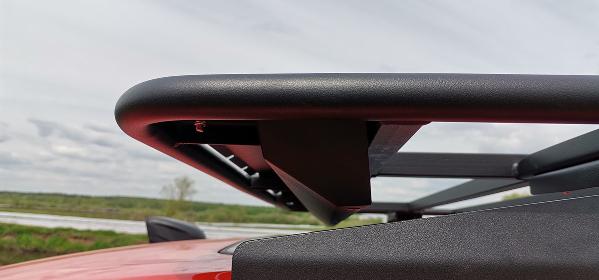 Наличие дефлектора значительно снижает аэродинамический шум, возникающий из-за набегающего воздушного потока вокруг экспедиционного багажника на высоких скоростях, что обеспечивает более комфортные условия водителю и пассажирам в длительных поездках.
