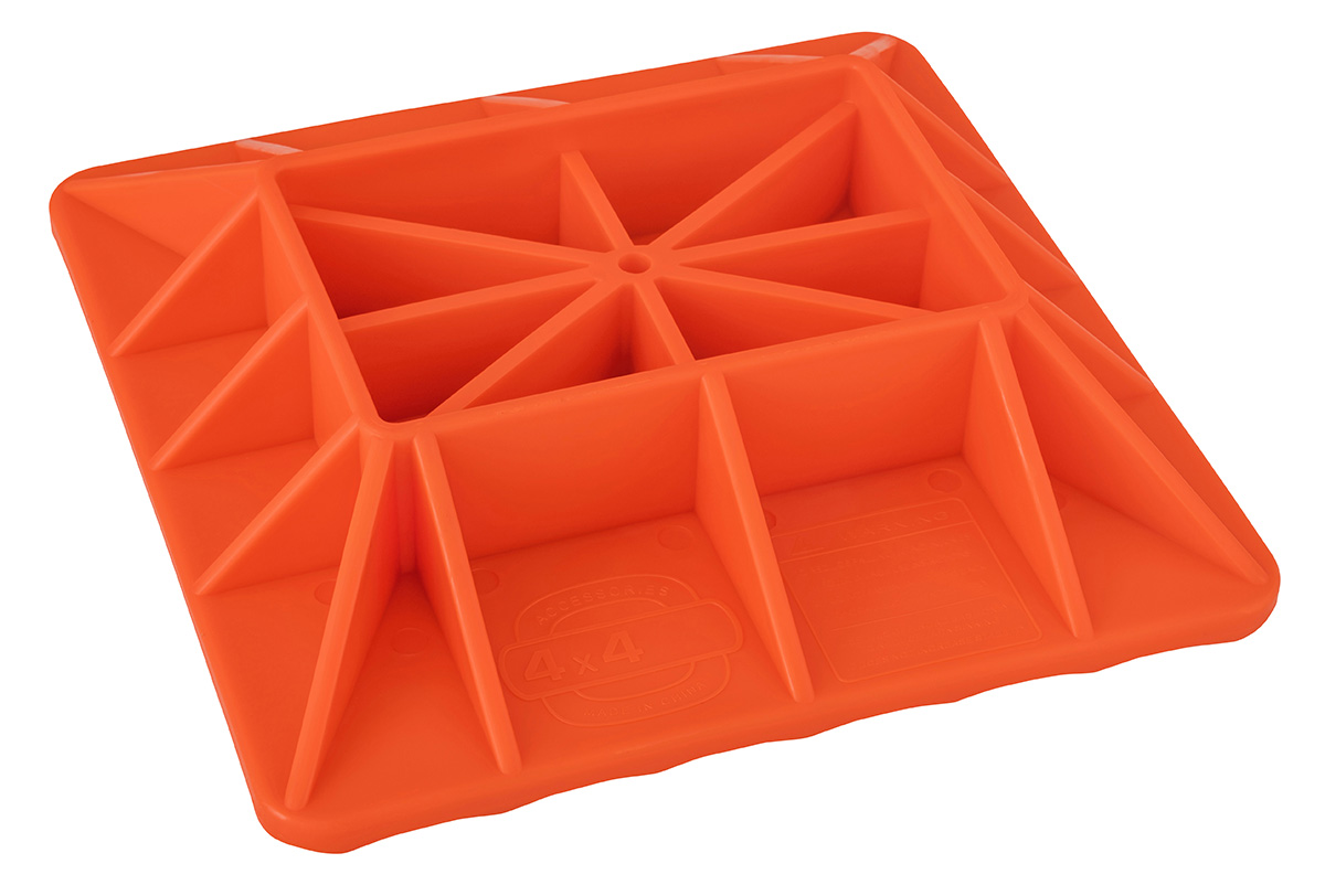 Подставка для реечного домкрата увеличивает пятно контакта и, тем самым, предотвращает погружение домкрата в грунт.