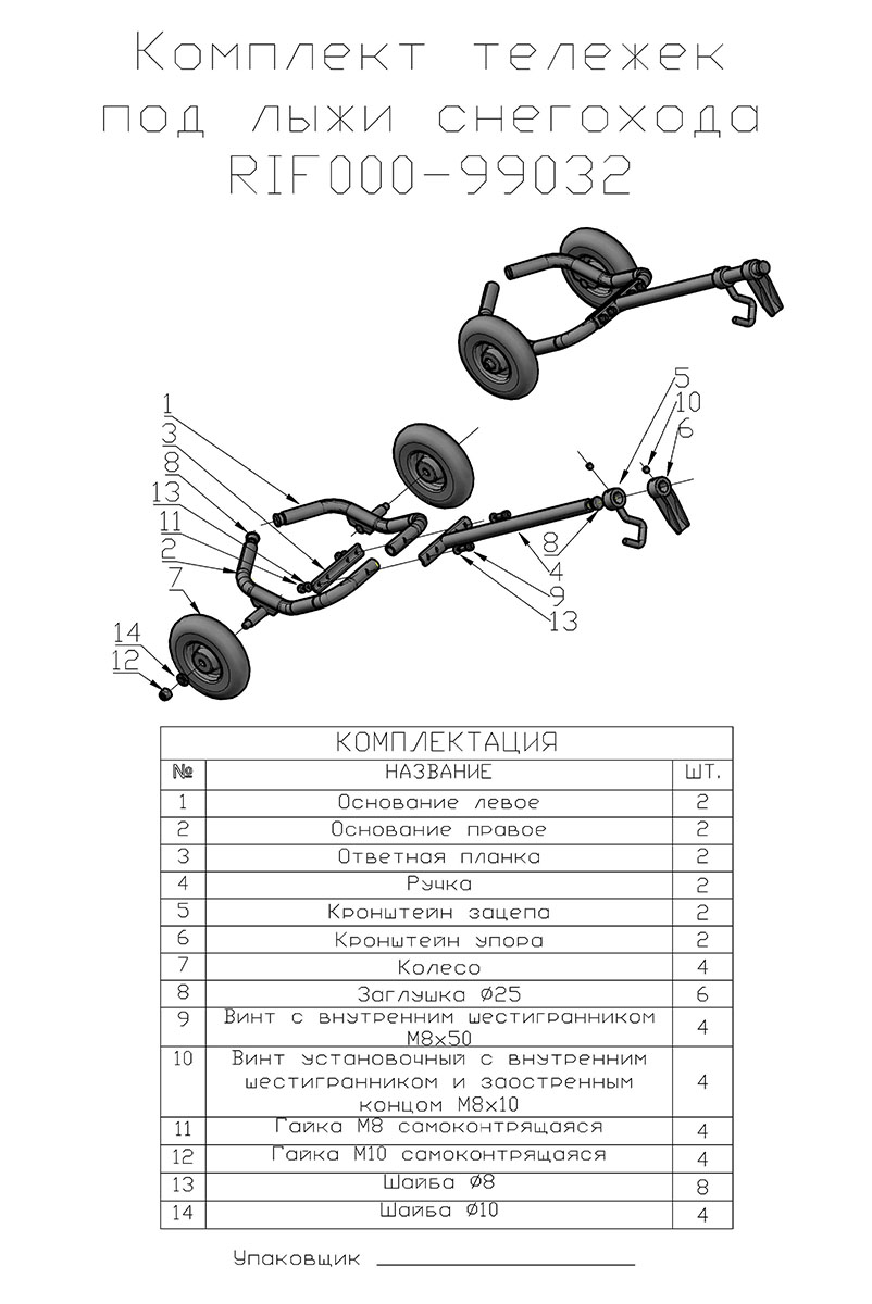 Конструкция подкатной тележки отличается высоким качеством изготовления и чрезвычайной прочностью (колеса не "подламываются" в процессе эксплуатации) и позволяет перемещать снегоходы различных моделей.